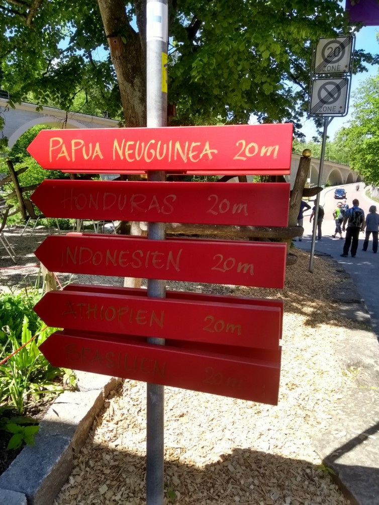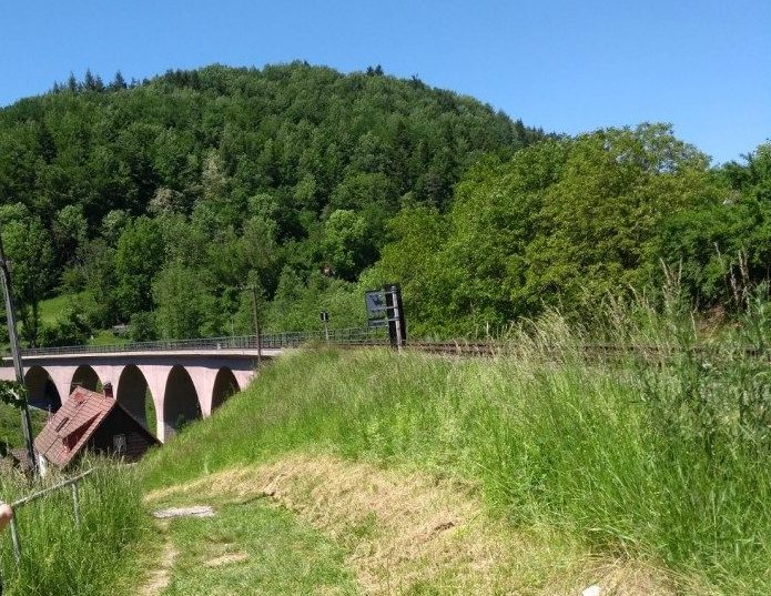 An der Laufenmühle dachten wir erst, wir sind falsch, ein Wegweiser „Papua Neuguinea 20 m“, Papua Neuguinea erreichten wir jedoch nicht, sondern bewunderten das Viadukt der Wieslaufbahn bei der Laufenmühle.